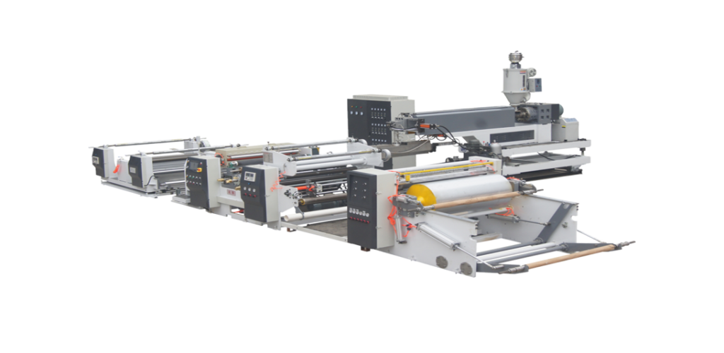 Advanced extrusion lamination lines are used to laminate woven fabrics with BOPP films and other coatings. The equipment features auto roll change and high-speed operation to ensure continuous, precise, and waste-reducing lamination processes.